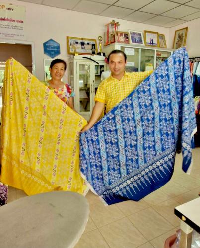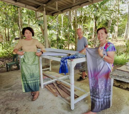 นางสาวนิพัทธา รองเดช พัฒนาการอำเภอกันตัง พร้อมด้วย นายสราวุธ จันทร์แก้ว อาสาพัฒนา(อสพ.) ได้ลงพื้นที่ติดตามกลุ่มโต๊ะเมืองบาติกม.4 ต.บางหมาก อ.กันตัง จ.ตรัง ในการทำผ้าบาติกมัดย้อมสีธรรมชาติเพื่อส่งเข้าประกวดผ้าลายพระราชทาน “ผ้าลายสิริราชพัสตราภรณ์” โดยมีวัตถุประสงค์ ดังนี้